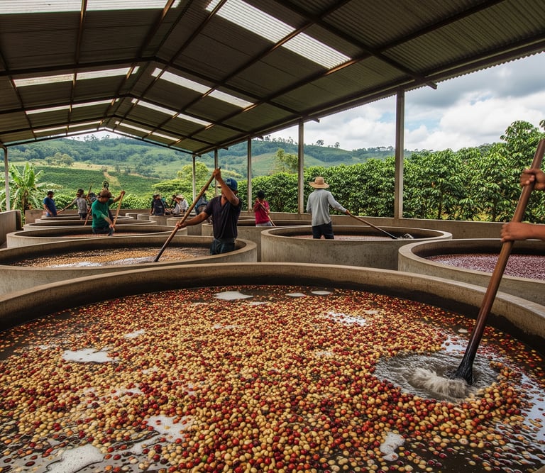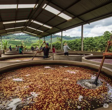 Fermentation: The beans, still covered in mucilage, are then typically submerged in water tanks for 12-72 hours. During this time, enzymes naturally present or added break down the mucilage. Some producers opt for "dry fermentation" where beans are fermented without water.