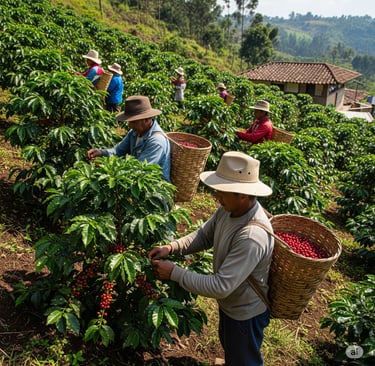 Harvesting: Ripe coffee cherries are picked and carefully sorted to remove any unripe or overripe fruit.